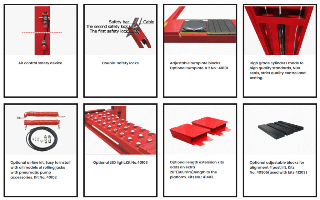 - Optional air line kit: No. 40102 - Five-year Warranty on Steel Components, Three-year Warranty on Hydraulic Parts and Two Years on electrical components