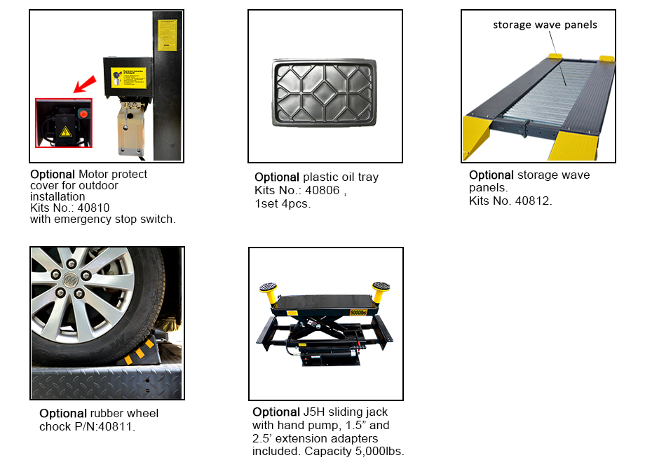 - Lifting capacity: 9,000lbs, max. car weight:6,000lbs.