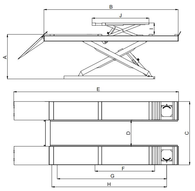 - 12,000lbs capacity for main scissor lift and 9,000lbs capacity for secondary scissor lift